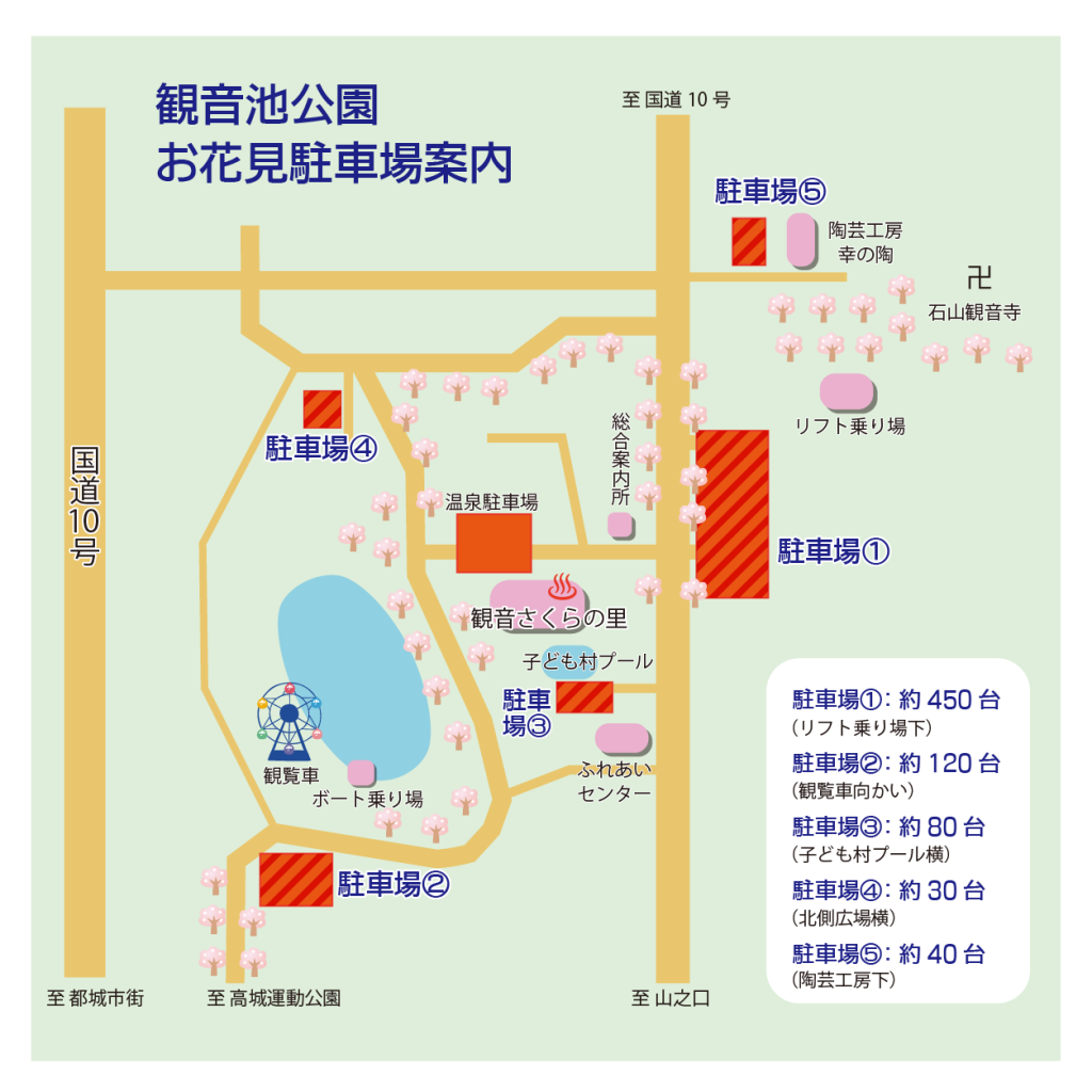 桜のシーズン中は、特に土日・祝日に公園周辺の道路で大変な渋滞が予想されます。
