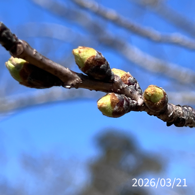 🌸3月21日、多くの桜では、まだ「つぼみ」の状態です。一部1~2輪開花している桜もあります。