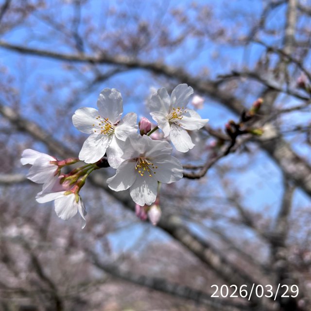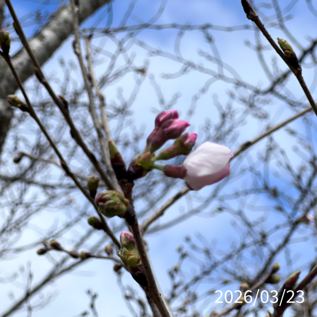 🌸3月23日、桜の咲き始めです。多くの桜で数輪咲いています。