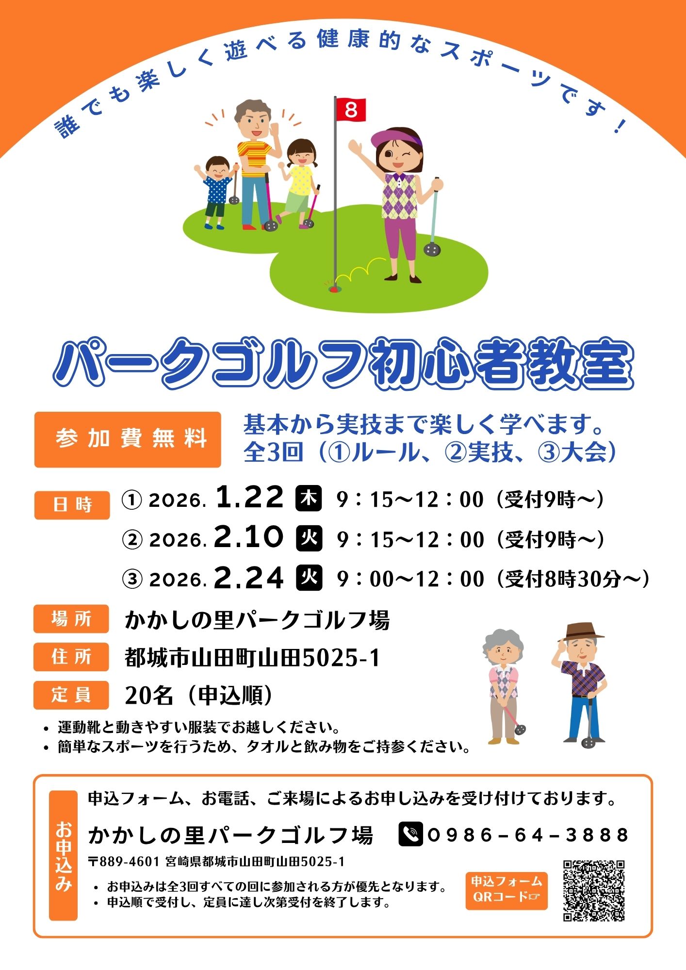 📞 かかしの里パークゴルフ場 TEL:0986-64-3888